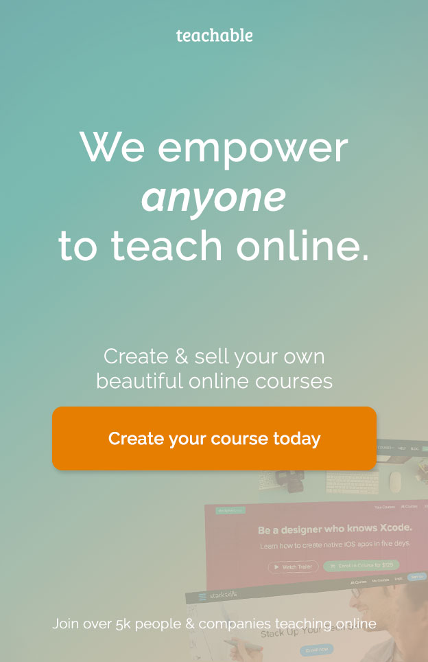 Join over 7,500 instructors who use Teachable to share their knowledge. Easily create an online course with our powerful yet simple all-in-one platform